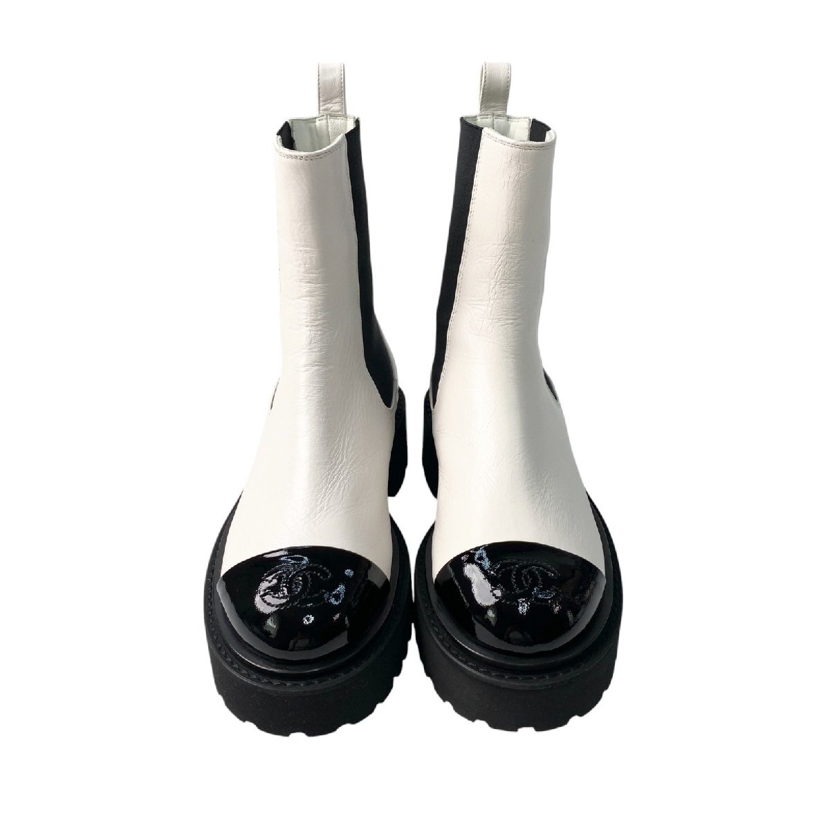 - 未使用 シャネル CHANEL レディース サイドゴア ショートブーツ 35C レザー パテント G38218 Y55662 22cm
