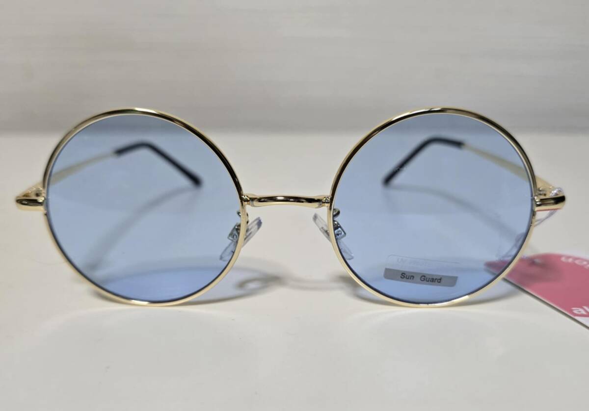 - レトロタイプ/大トンボ サングラス/丸眼鏡/金x薄いブルー 男女兼用UV400