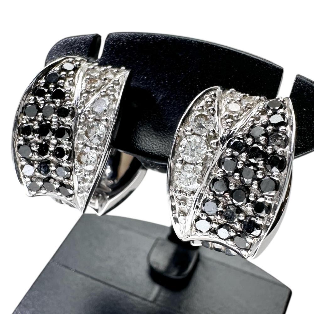 > ピアリング ダイヤモンド/ブラックダイヤモンド 計0.52×2ct シェル オニキス イヤリング K18WGホワイトゴールド 7.6g レディース