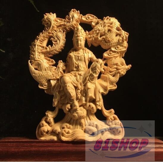 - 「81SHOP」仏教美術 観音菩薩 木彫 縁起物 細密彫刻 龍鳳呈祥-自在観音 仏像 置物