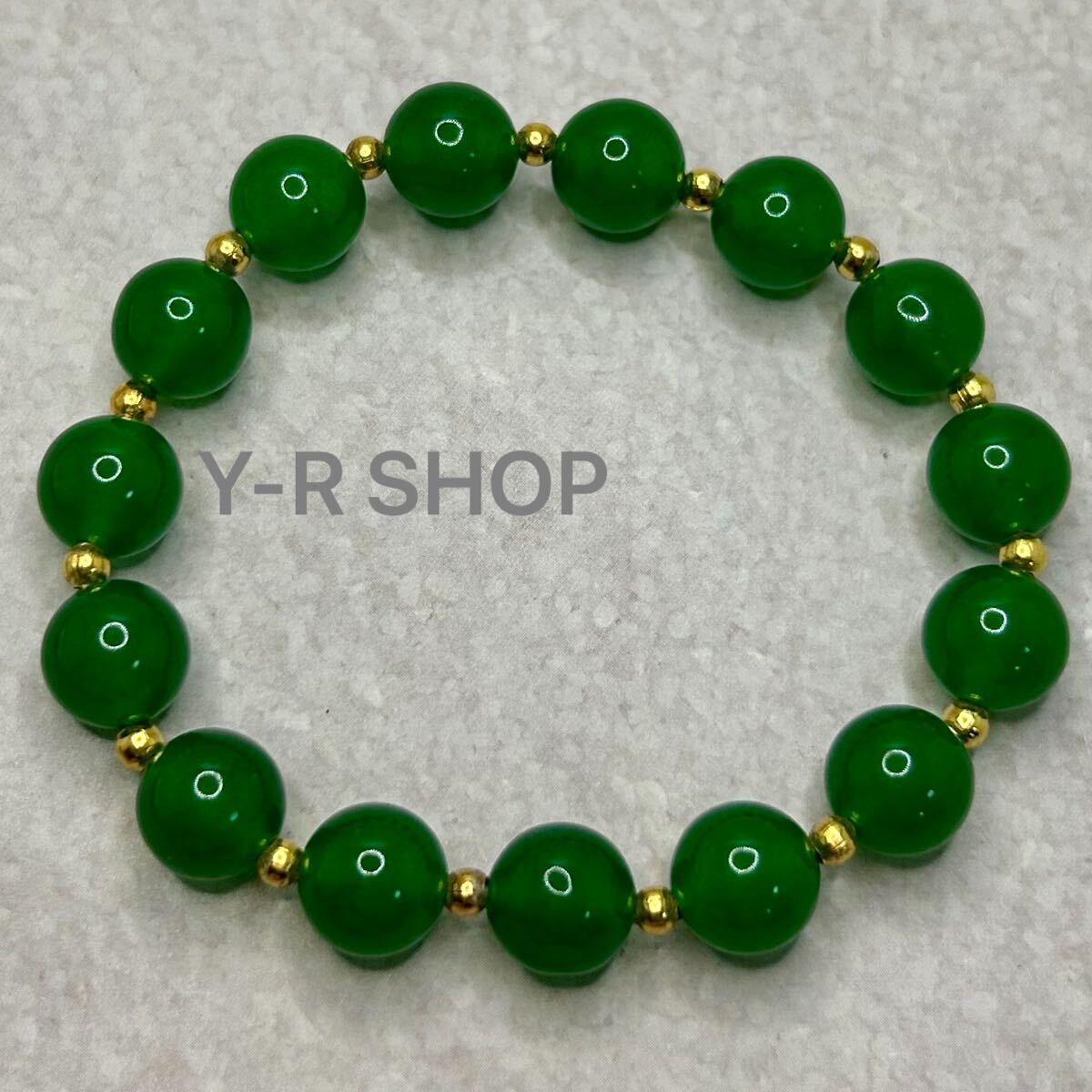 - 天然石★10mm玉グリーンクォーツとゴールドビーズのブレスレット★レディースメンズ腕輪数珠バングルエスニックアジアン雑貨新品宝石Y-R