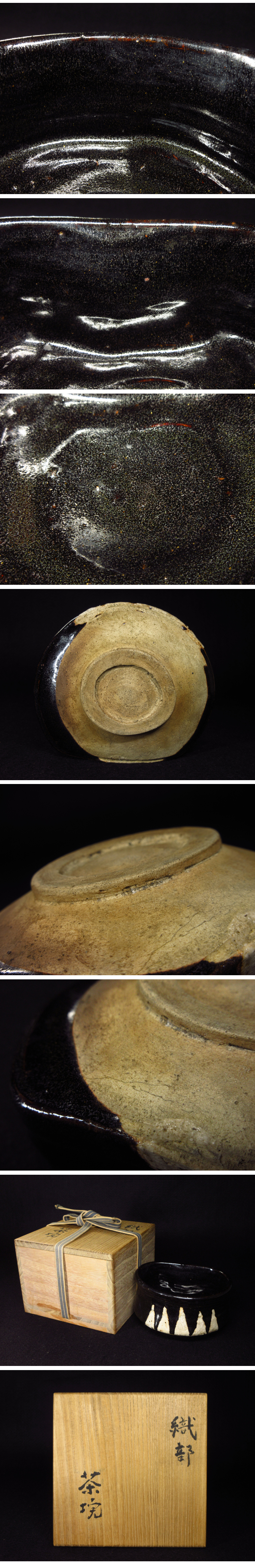 - 【漸】秀逸時代茶道具 江戸時代初期 黒織部茶碗 合箱 黒織部 織部黒 織部焼 古美術 茶道具 本物保証【HY2391】
