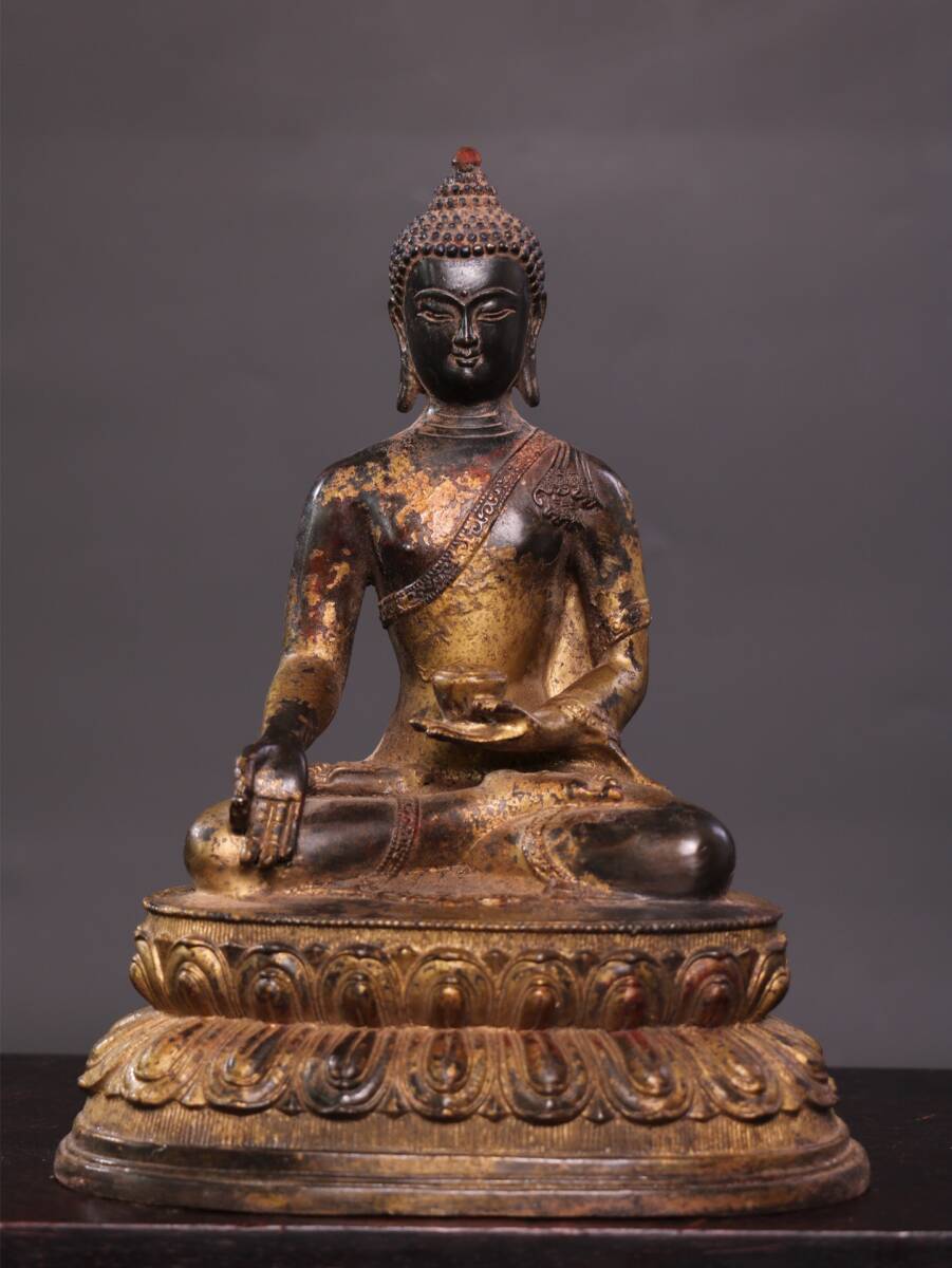 - 蔵友旧蔵出 銅製 泥金 撒朱砂 釋迦如來像 希少珍品 貴重品 置物 古賞物 密宗密教 供養品 仏教美術品