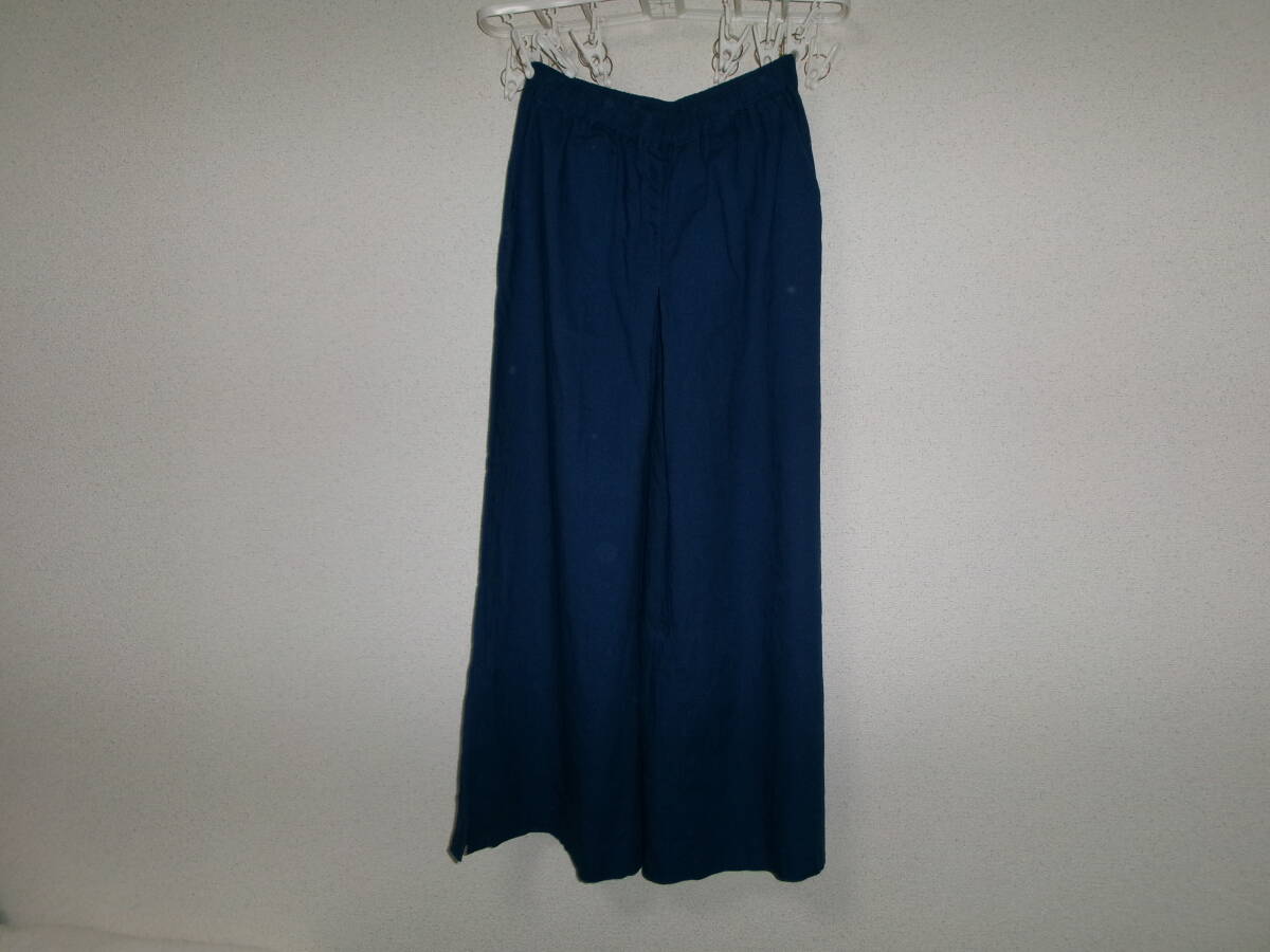 - niko and...ニコアンド☆アダストリア☆ネイビーブルー明るめ紺のフレアガウチョパンツ☆ナチュラル柔らか♪麻混リネン素材☆Lサイズ 美品