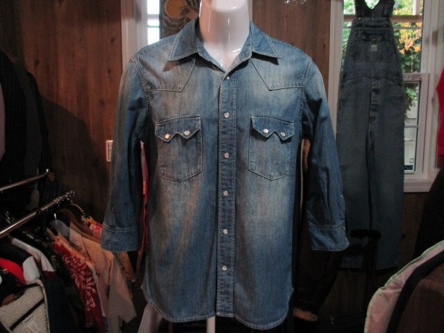 - 激シブ URBAN RESERCH DOORS デニム 七分袖 ウエスタンシャツ オールド ヴィンテージスタイル レトロアメリカン ガレージワークウエア