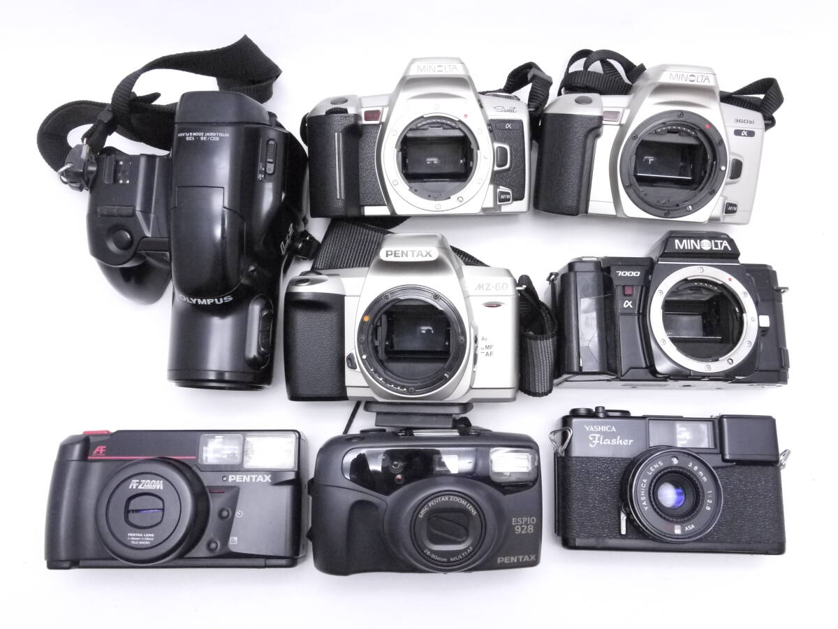 - ☆フィルムカメラ 8個 まとめ売り ジャンク品 MINOLTA 7000 α , Sweet α , 360si α , YASHICA Flasher , ESPIO 982 ...etc