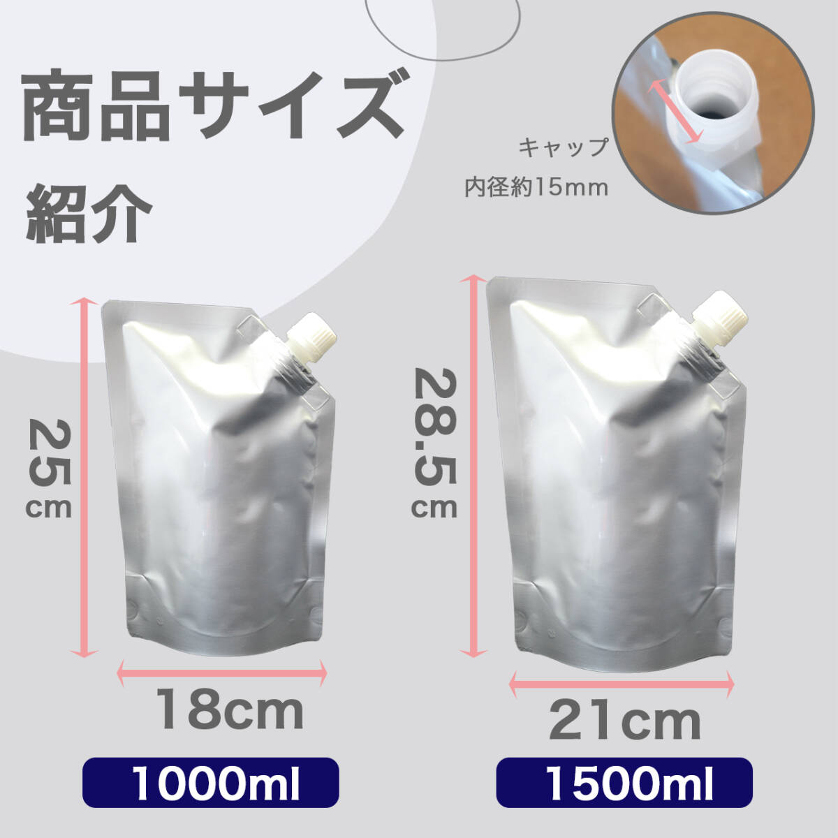 - 100枚 液体詰め替え容器 スパウト付きアルミスタンドパウチ1000-1500mlスパウトパウチ レフィール 保存容器 詰め替え容器