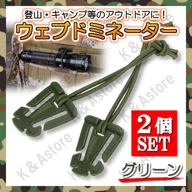 > ウェブドミネーター 2個 バッグ ベルト ゴム紐 アウトドア レジャー サバゲー 登山 ウェビングクリップ ベルトクリップ グリーン 緑