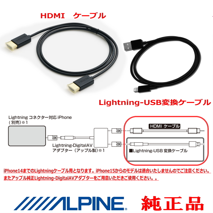 - ALPINE 『 アルパイン 』 純正 iPhone / iPod HDMI / USB から Lightningケーブルへの変換用コードセット (AH0203