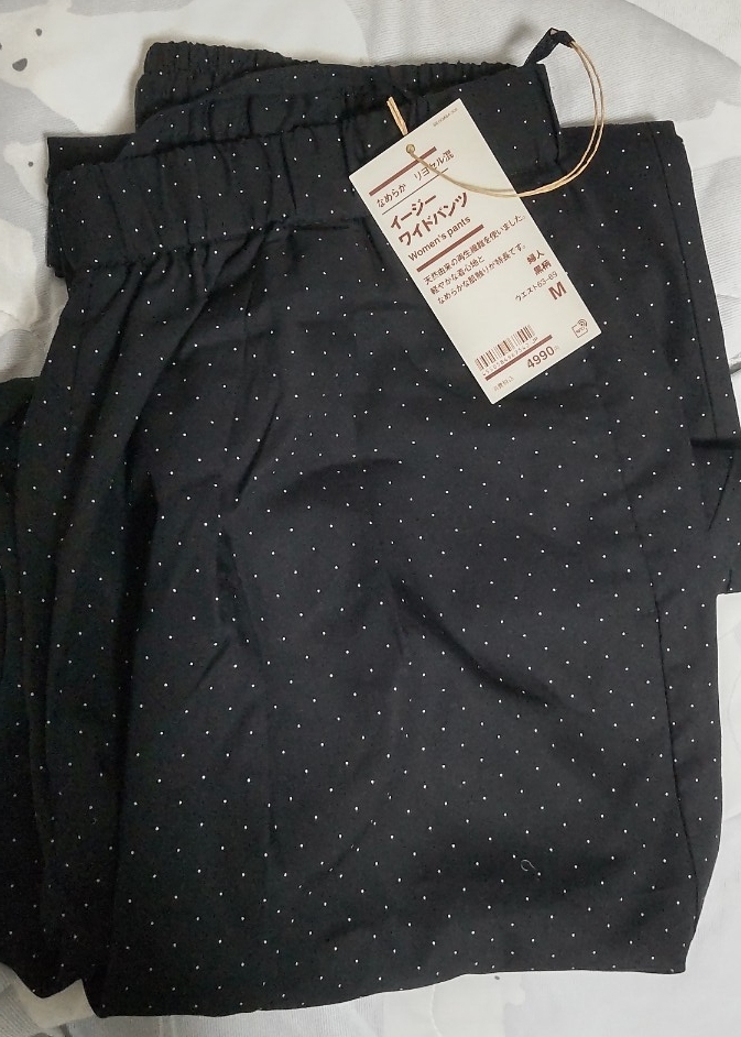 - MUJI 無印良品 新品タグ付 なめらか リヨセル イージーワイドパンツ 黒 ドット M