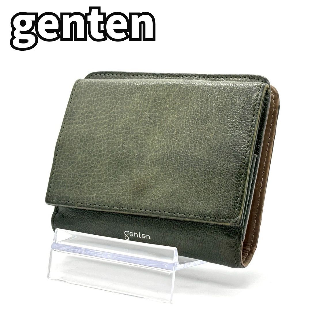 - genten ゲンテン フレスコ 二つ折り財布 ゴートレザー 薄型 本革 天然素材 軽量 おしゃれ コンパクト 緑