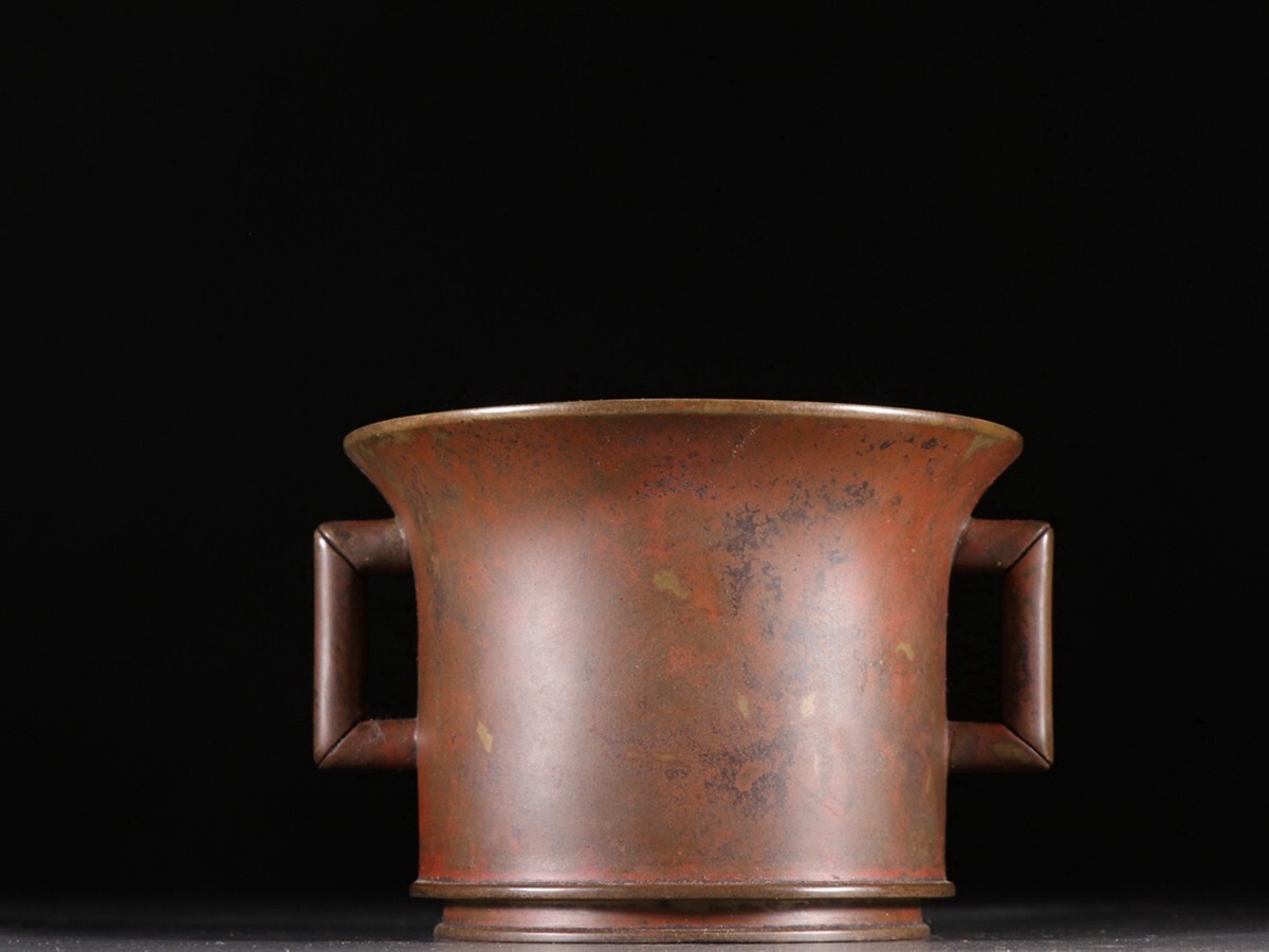 - 「明代 大明宣徳年製 古銅彫 双耳老銅香炉」旧銅器 置物擺件 賞物 中国古美術 旧蔵出