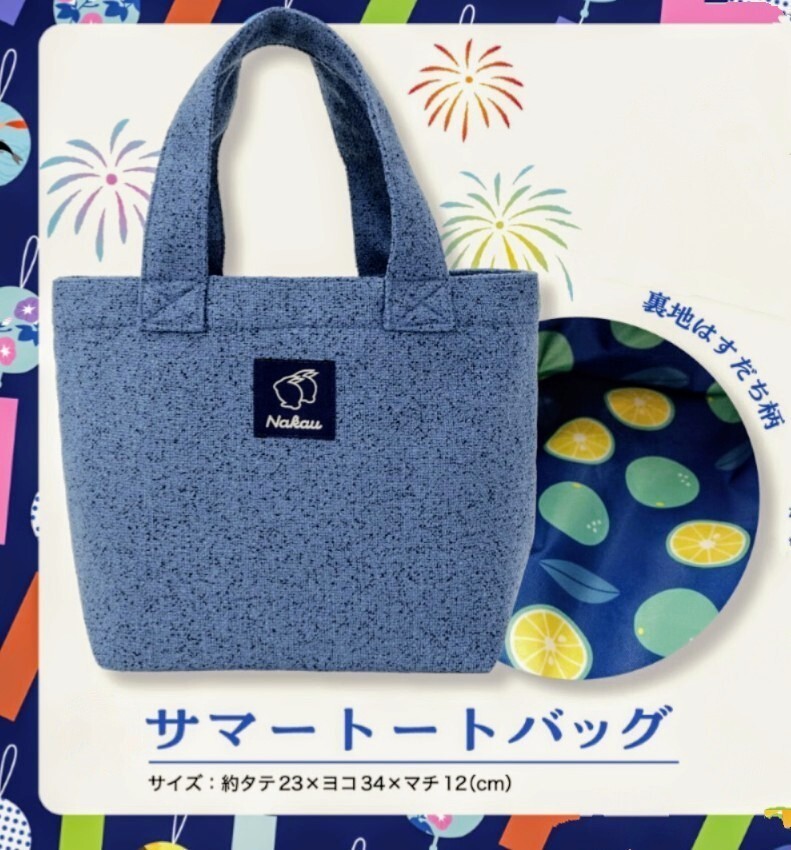 - 【未開封★非売品】なか卯★サマートートバッグ★タテ23cm×ヨコ34cm×マチ12cm★裏地 すだち柄★すだちおろしうどん★白いうさぎロゴ入り