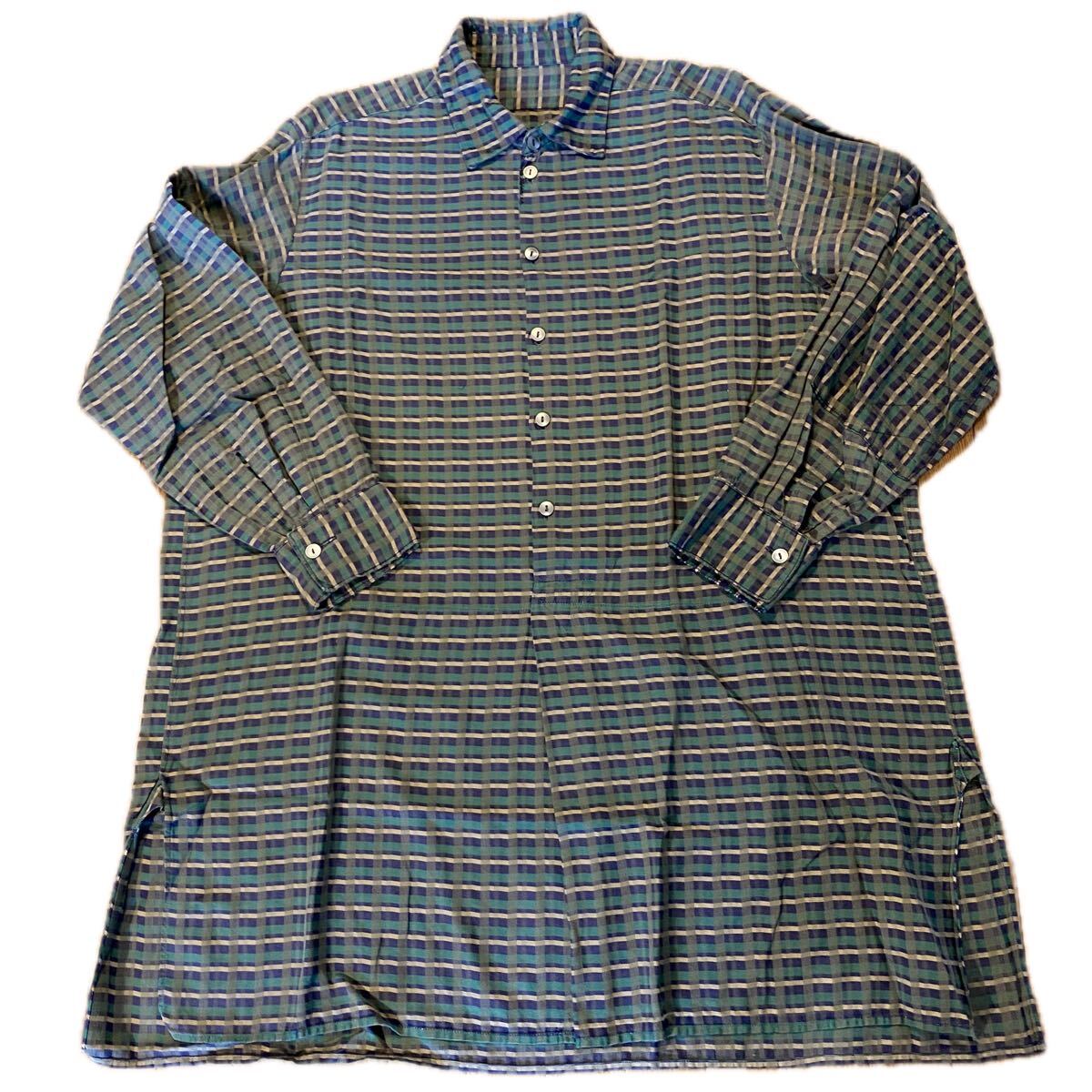 > グランパシャツ ユーロ ヴィンテージ フランス チェック スモック プルオーバー 長袖 ビンテージ ユーロ古着 ワンピース シャツ 緑