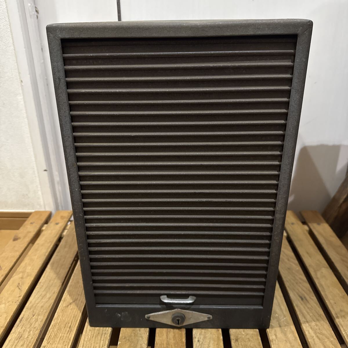 - 工業系 蛇腹シャッター スチールケースグリーン 引き出し ビンテージ!