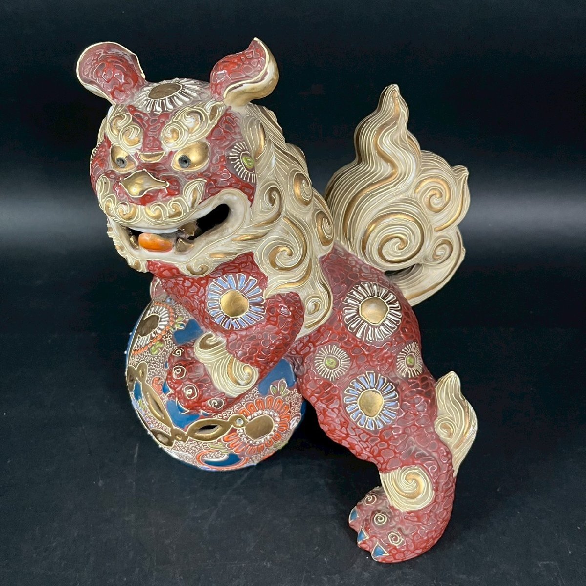 - SW0718-5-3 九谷 玉乗り獅子 獅子 シーサー 陶器 陶磁器 陶芸 伝統 工芸 縁起物 魔除け 置物 インテリア 高さ28㎝ 横幅24㎝ 100サイズ