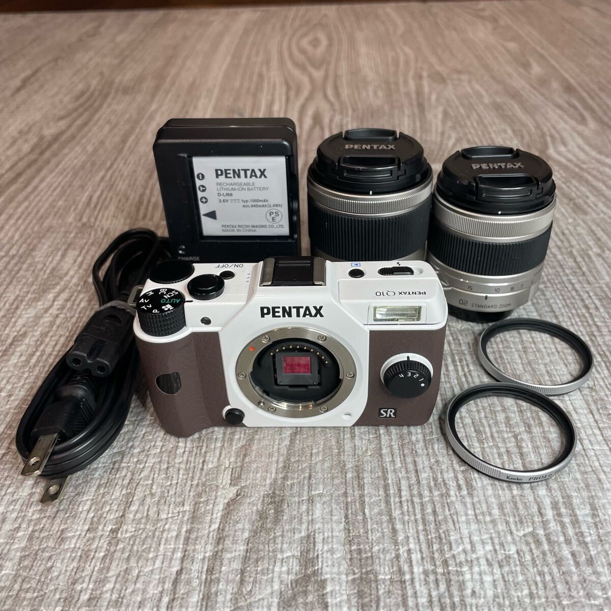 > PENTAX ペンタックス Q10 ミラーレス一眼カメラ オーダーカラー ホワイト/ブラウン レンズ 02 STANDARD ZOOM 06 TELEPHOTO ZOOM