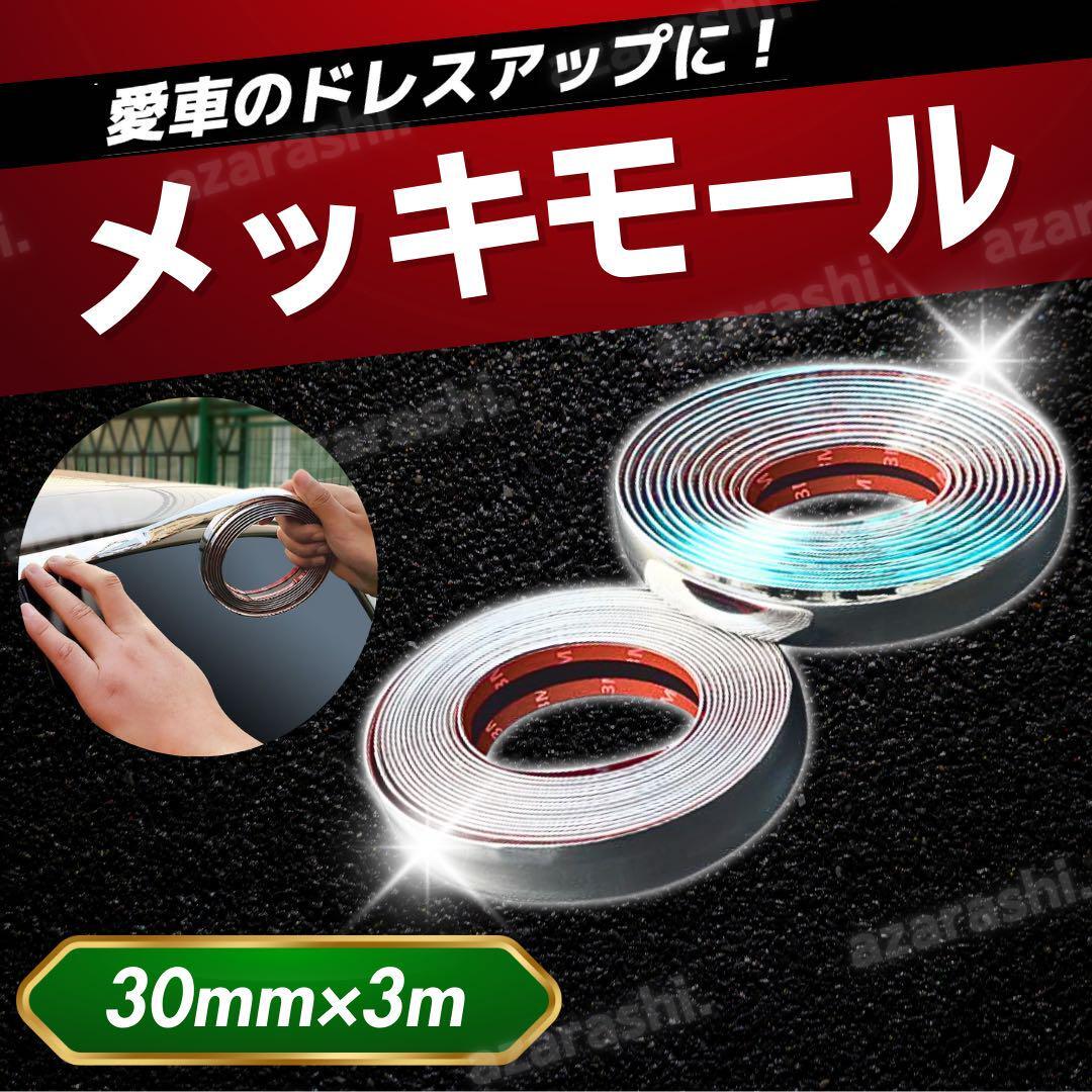 - メッキモール シルバー ドア 車 バンパー 傷 保護 ドレスアップ 窓 3cm モール 内装 ドレスアップ 3m メッキテープ プリウス 軽自動車 SUV