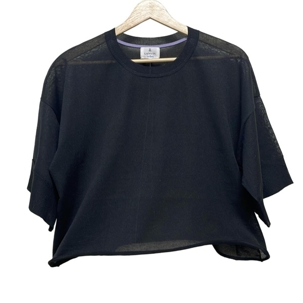 > ランバンオンブルー LANVIN en Bleu 七分袖セーター/ニット サイズ38 M - 黒×ライトパープル レディース クルーネック/シースルー 美品