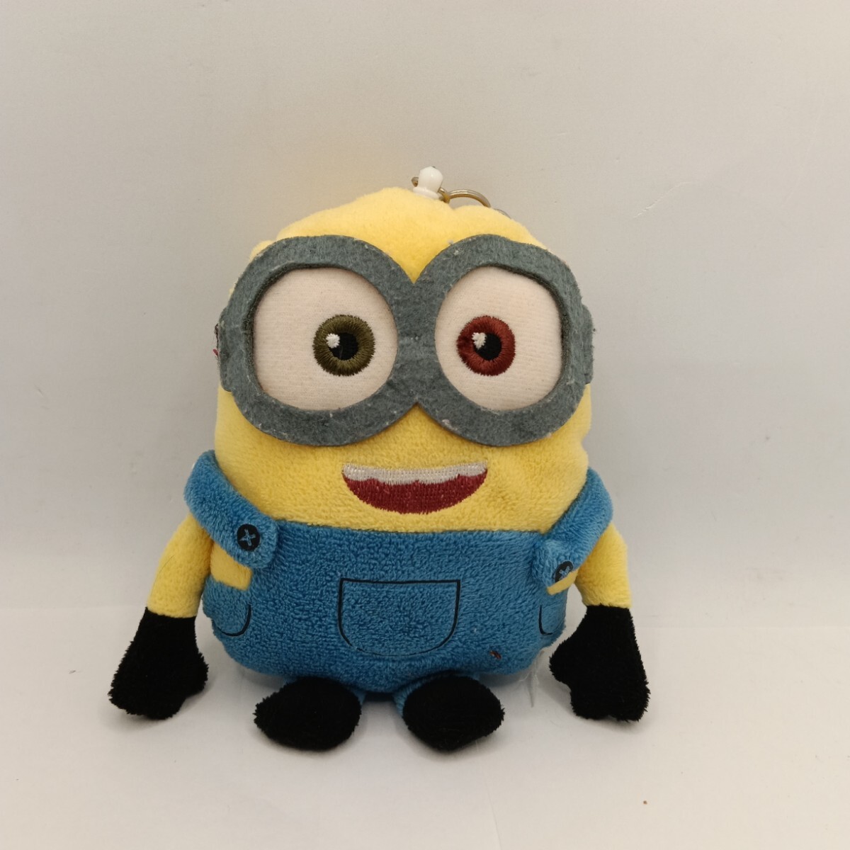 - ミニオンのキーホルダー付きぬいぐるみ、約15cmのサイズ
