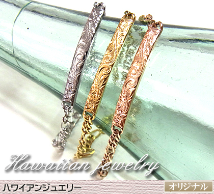 > ★SNS★ハワイアンジュエリー★アレルギー&海水浴&温泉OK★ステンレスブレスレット★ピンクゴールド&ゴールド&シルバープルメリアプレート