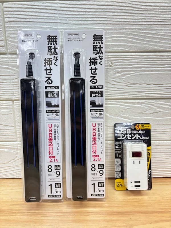- A4 YAZAWA 3点 急速充電2.1A スマホの充電コードが2ポート挿せるUSBアダプタ&USB 1ポート付 差込口フリータップ ブラック 8~9個口 1.5m