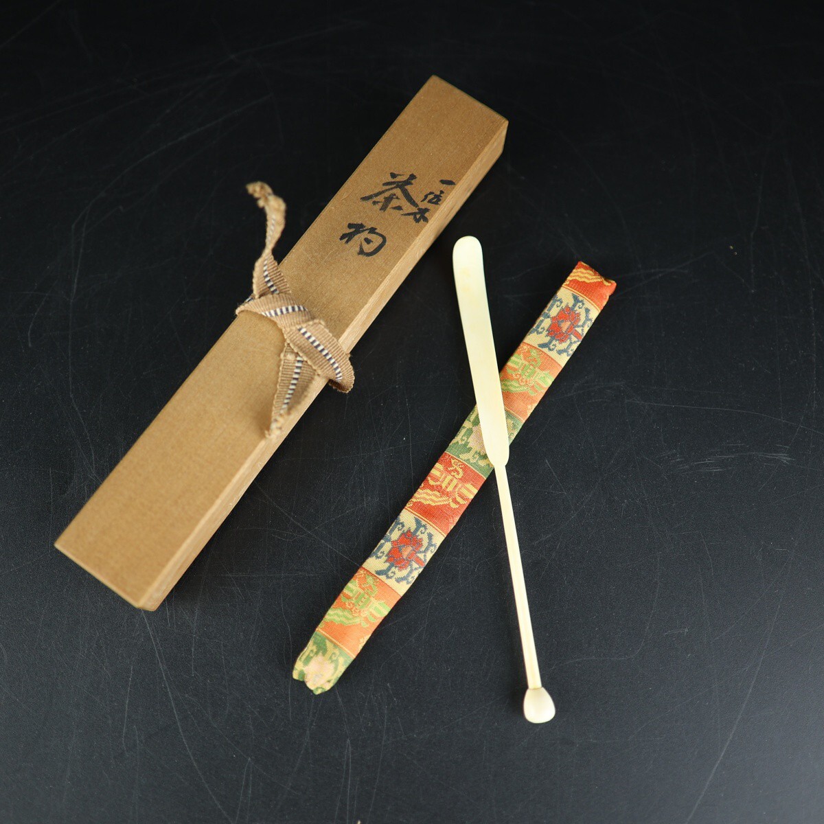 - K1797 時代物 天然素材 東洋彫刻 茶杓 箱付 長17.0cm 重5.5g