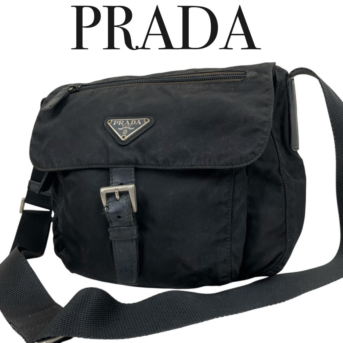 > PRADA プラダ メッセンジャーバッグ ショルダーバッグ クロスボディ ポコノ 黒 ブラック ナイロン 三角プレート 白タグ 肩掛け
