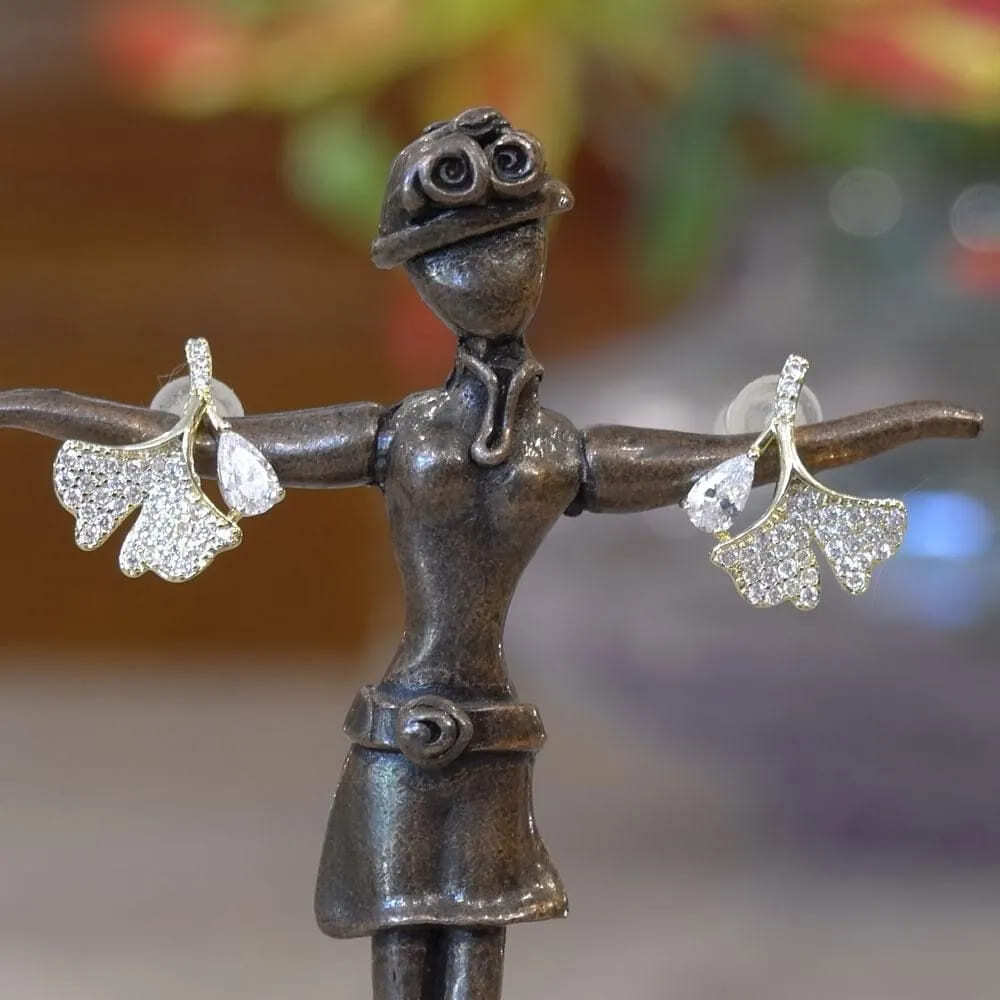 - 【キラキラがしっとり上品 いちょうピアス】葉リーフ イチョウ銀杏 金 スタッド ファッション パリフランス新品アクセサリーレディース
