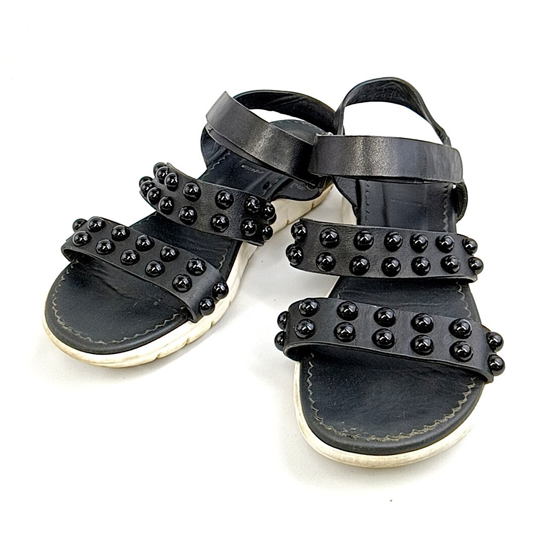 - $ 美品 $ 希少◆ MONCLER◆ モンクレール◆ スタッズ付き 本革レザー◆ 厚底 スポーツ サンダル 靴◆ メタルロゴ◆ 黒 ブラック◆ 38 24cm