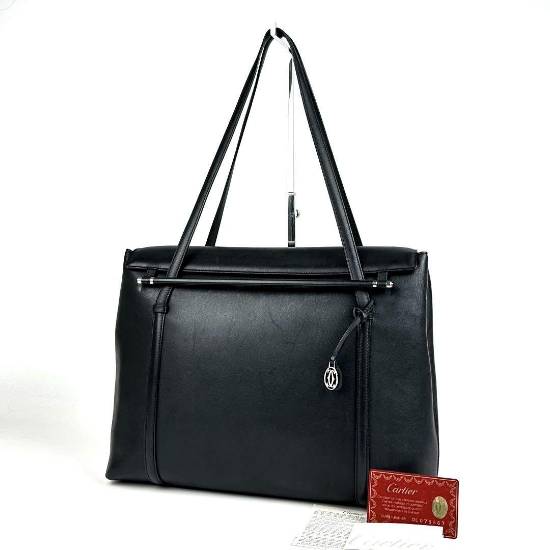 - 美品 Cartier カルティエ カボション トートバッグ ハンドバッグ ビジネス 書類鞄 マストライン フォーマル 男女兼用 チャーム レザー 黒