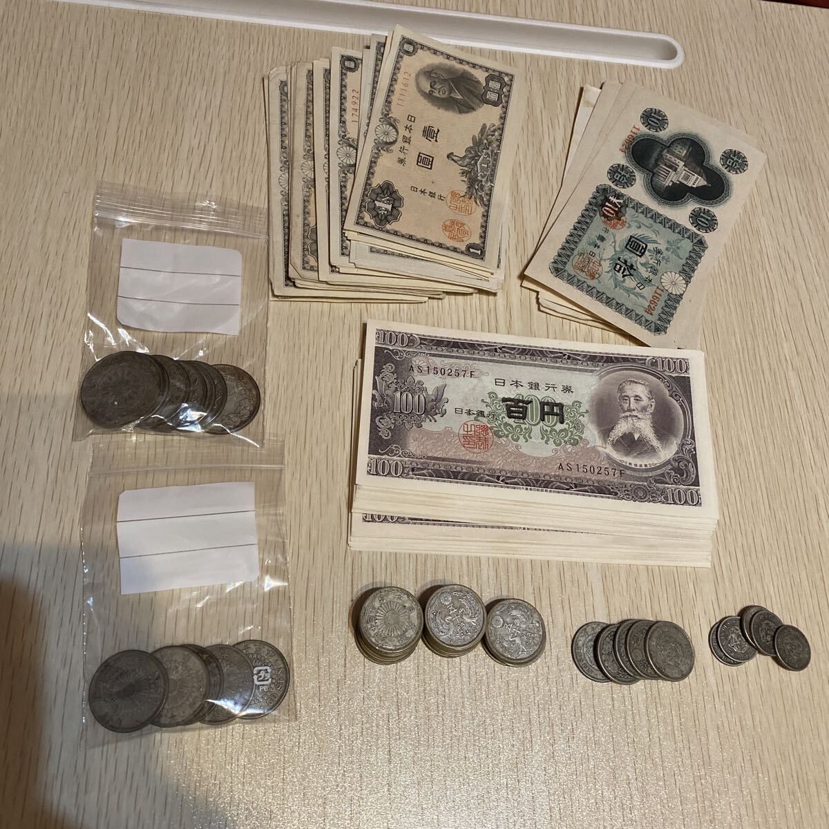 - 古銭 まとめ売り 100円札56枚 10円札7枚 1円札58枚 旭日竜50銭7枚 旭日50銭5枚 鳳凰50銭26枚 旭日竜20銭5枚 10銭5枚 旧札