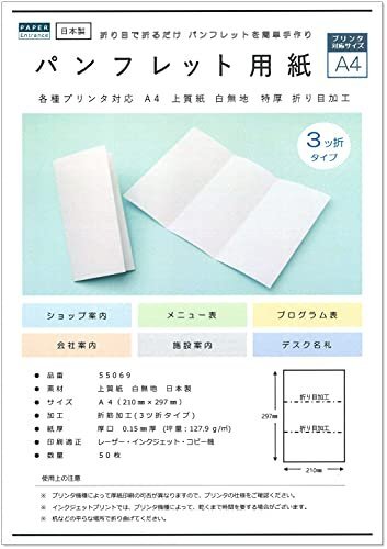 【在庫限りです】人気商品!50枚メニューペーパーエントランスA455069三つ折り案内状パンフレット用紙プリントペーパー手作り