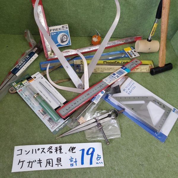- 【アウトレット品】 シンワ 他 コンパス 丸パス ポンチ 他 ケガキ用具 各種詰め合わせ 19点セット 差し金 ケガキ針 スコヤ sp-024-585