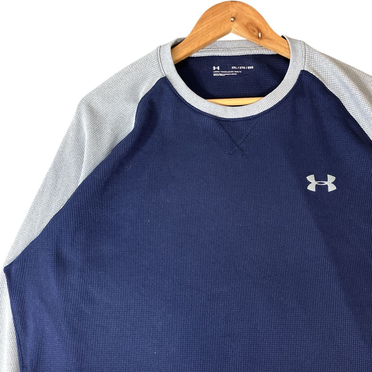 - サーマル生地 サーマルTシャツ y2k 00s アンダーアーマー サーマルロンT 長袖Tシャツ ロングスリーブTシャツ ネイビー紺 グレー2XLラグラン