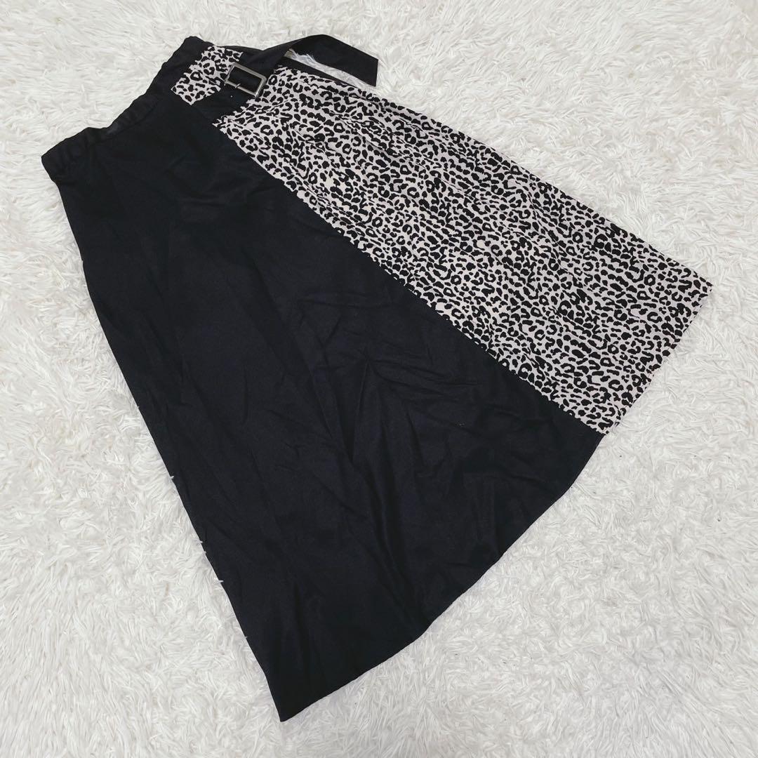 - 『ルティーク』 (M) レオパード切替ロングスカート フレア プリーツ おしゃれ
