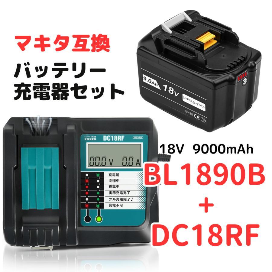 - (A) マキタ makita 互換 BL1890B 1個 + DC18RF 液晶付 充電器 バッテリー セット