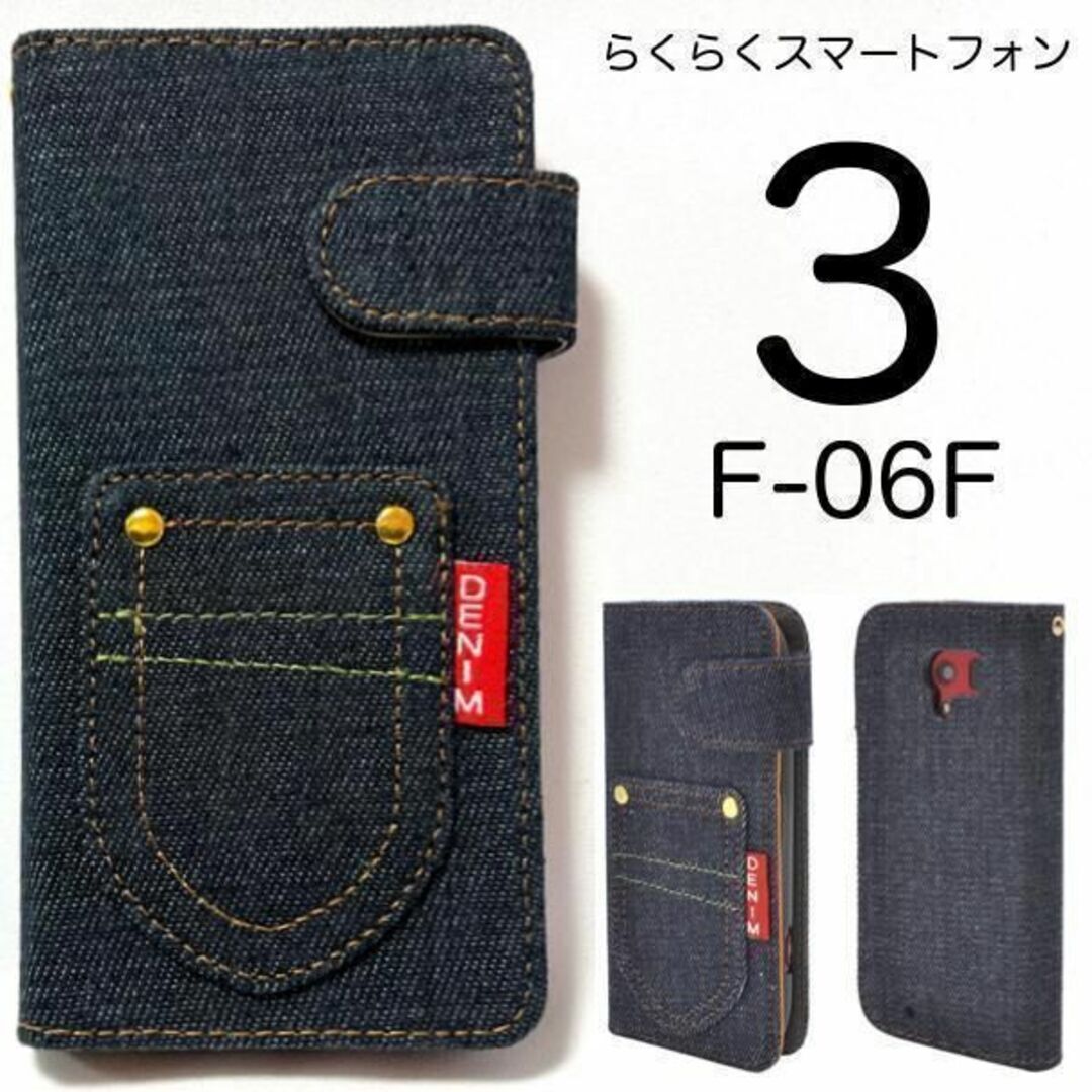 > らくらくスマートフォン3 F-06F デニムデザイン 手帳型ケース/スマホケース