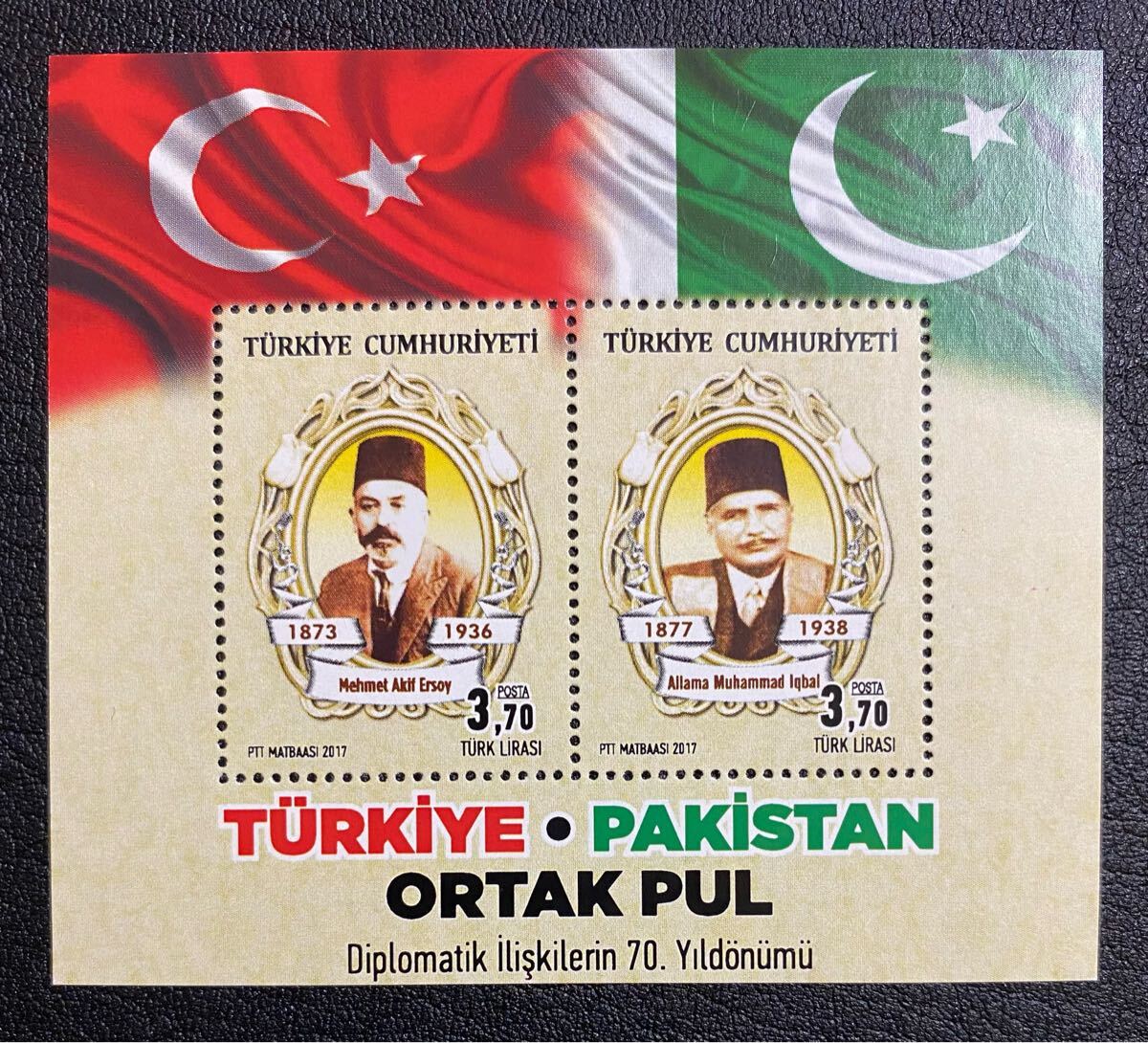 - トルコ パキスタンとの外交関係樹立70年 詩人 メフメト・アキフ・エルソイ 哲学者 イクバル 小型シート1種完 未使用 NH