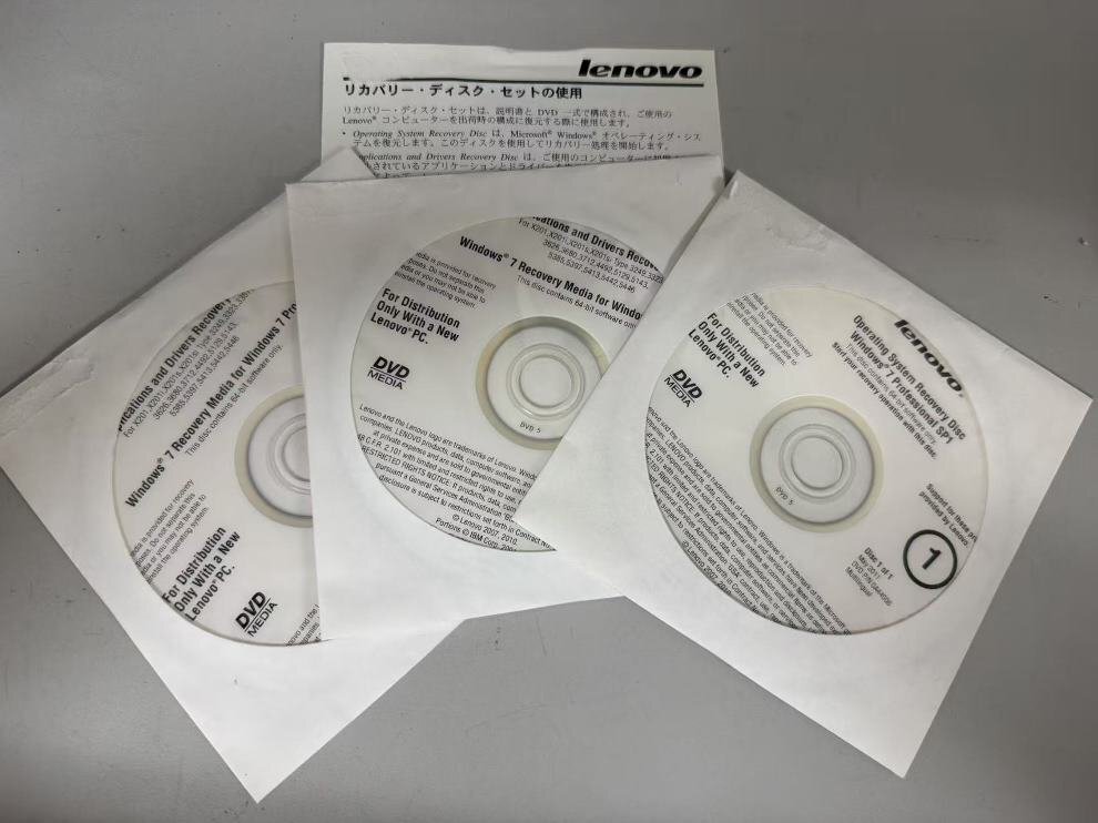 - 開封未使用品 Lenovo L412/L512 (0530/0553/0585/0591/2550/2597/2598/2599) リカバリーWindows 7 3枚組 64bit版 元箱付