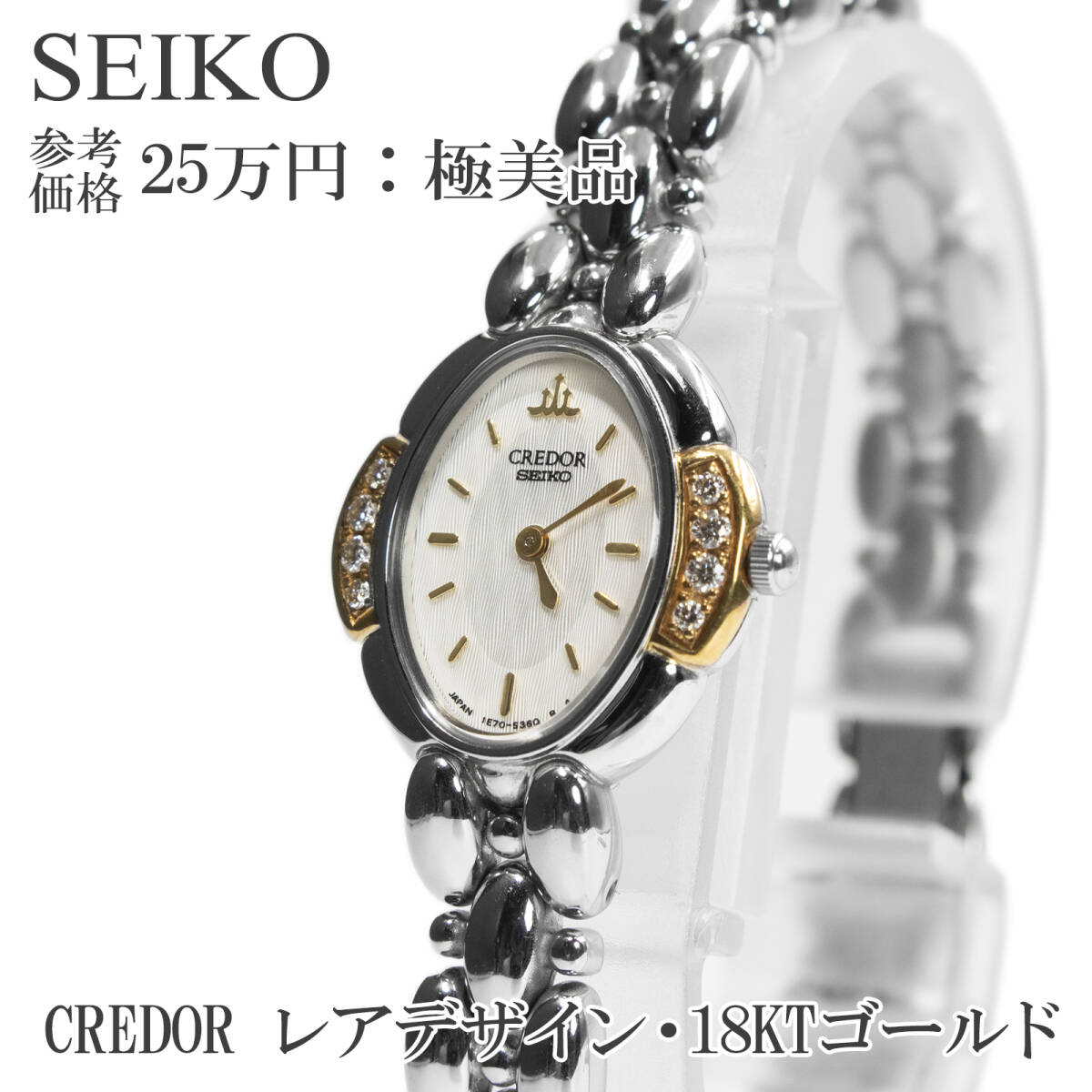 > 送料無料 セイコー 腕時計 レディース クレドール 1E70-3260 白 18KTゴールド 珍しい 8Pダイヤモンド 小さめ スリム ロゴ マーク 綺麗 Q095