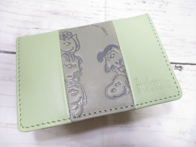 - 格安 新品 パスケース スヌーピー SNOOPY 定期入れ レディース ブランド カード入れ 本革 可愛いデザイン グリーン