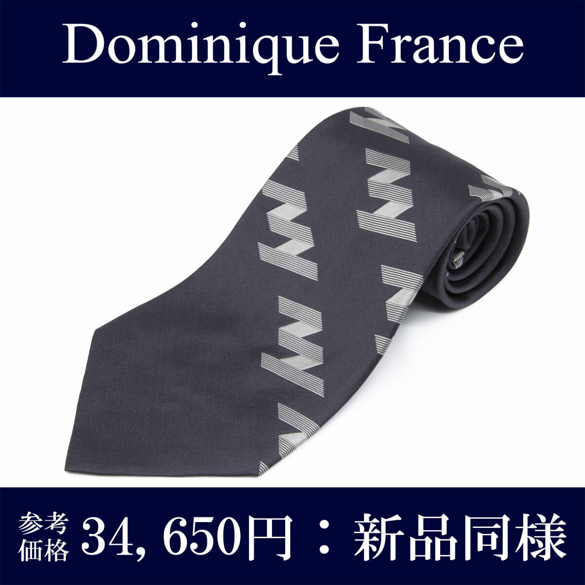 - 送料無料 ドミニックフランス ネクタイ ジャガードタイ 新品同様 シルク ネイビーブルー グレー プレステージ スリースター ブランド P111