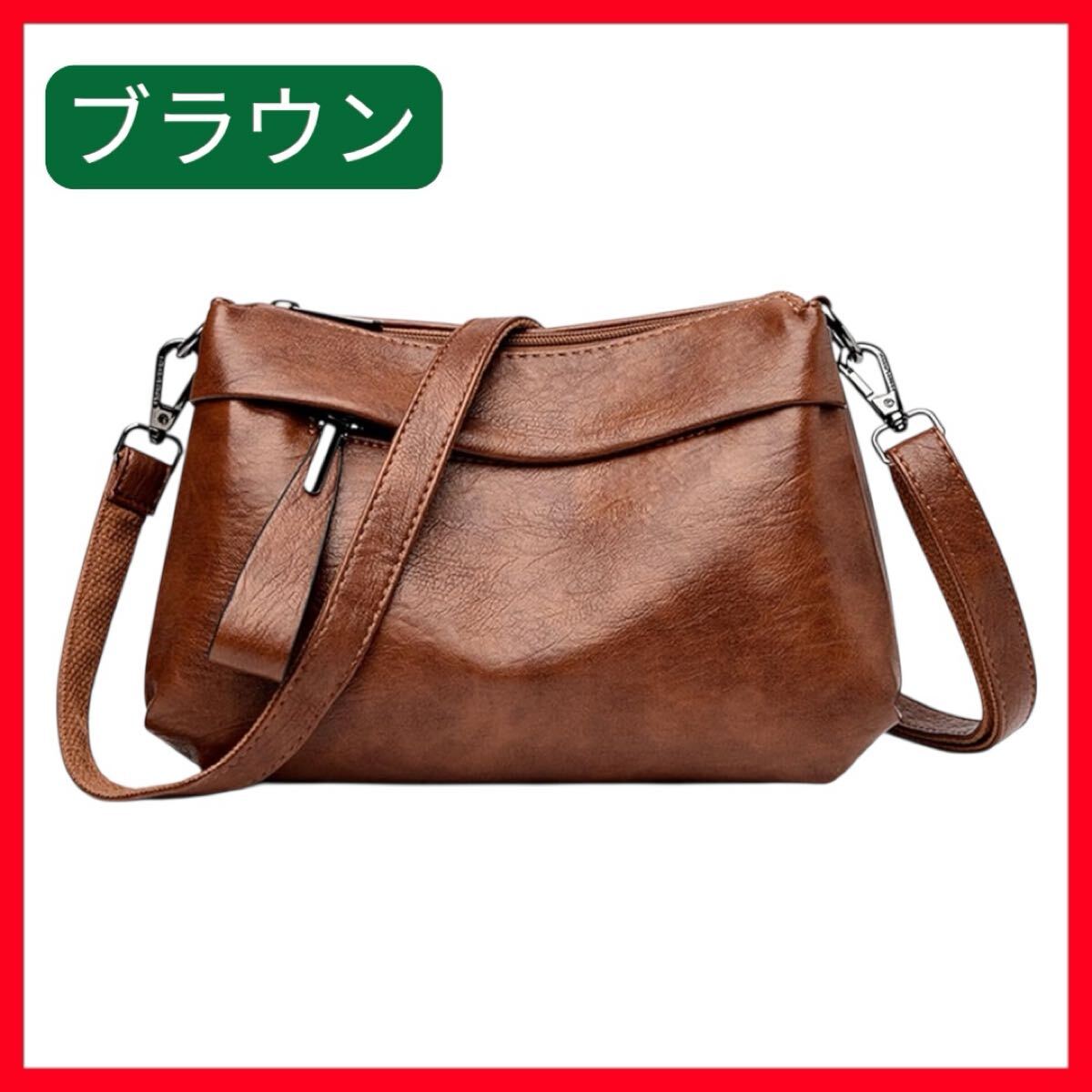 > ショルダーバッグ レディース 斜めがけ 小さめ PU革 2way 人気 防水 軽量 バッグ 女性用 鞄 肩掛け 仕切り ポケット多い おしゃれ ブラウン