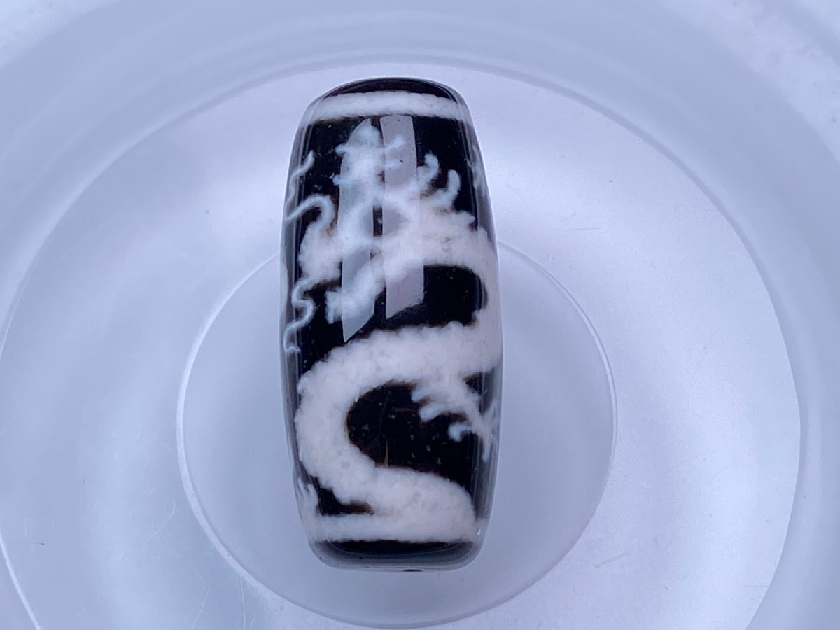 - 即決 0605h773 新入荷★【チベット老玉髄龍神天珠】★ 25x11.3mm(新品)