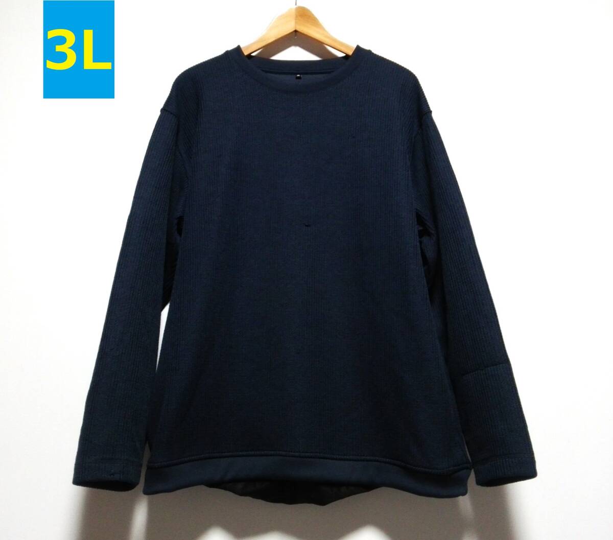- 極美品 ワークマン ★大きいサイズ/メンズ3L★ ストレッチ サーマルニットプルオーバー クルーネックトレーナー ブルゾン ネイビー