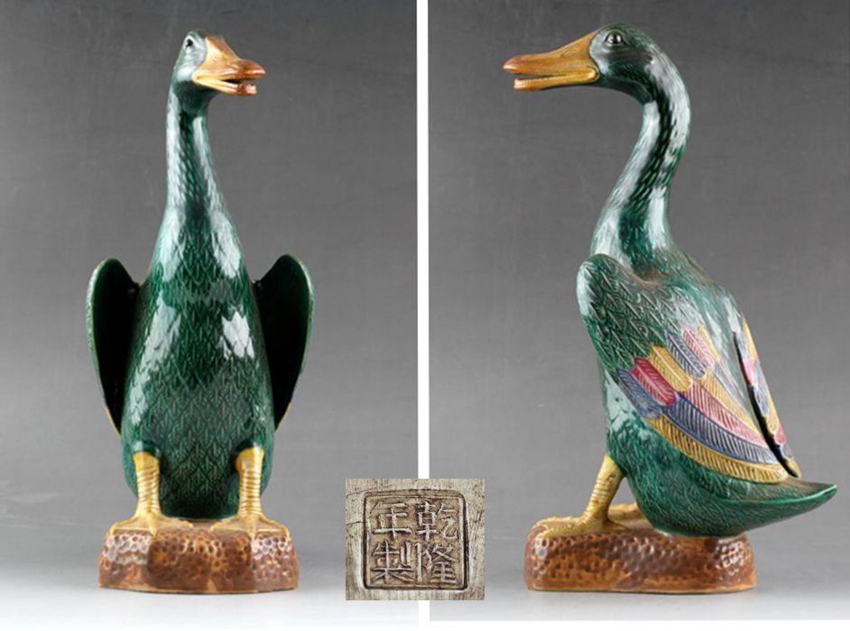 - ●唐物 陶磁器 綠彩 清 乾隆年制 緑釉 鴨 置物 骨董品 中国美術●