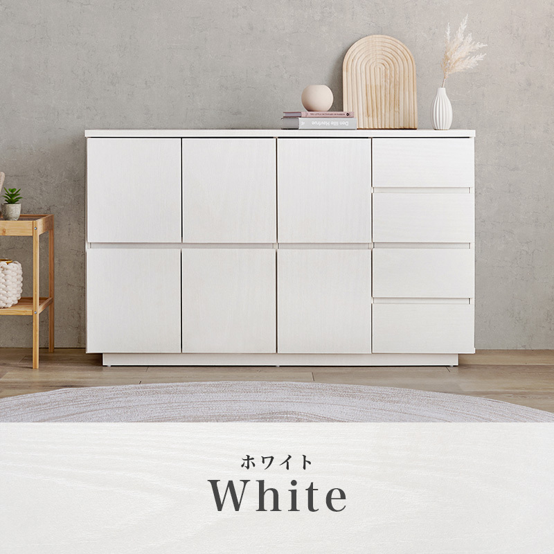 - 木目調デザインのシンプル引出付きキャビネットチェスト 幅119 ホワイト色