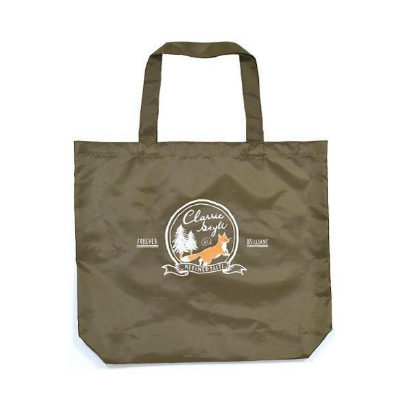- ナイロントートバッグ 横型 LLサイズ キツネ柄 カーキ エコバッグ 100均