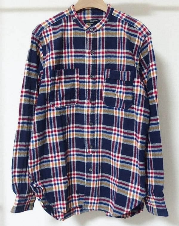 > Engineered Garments エンジニアードガーメンツ 直営店限定 Banded Collar Shirt Plaid Flannel バンドカラー チェック シャツ M